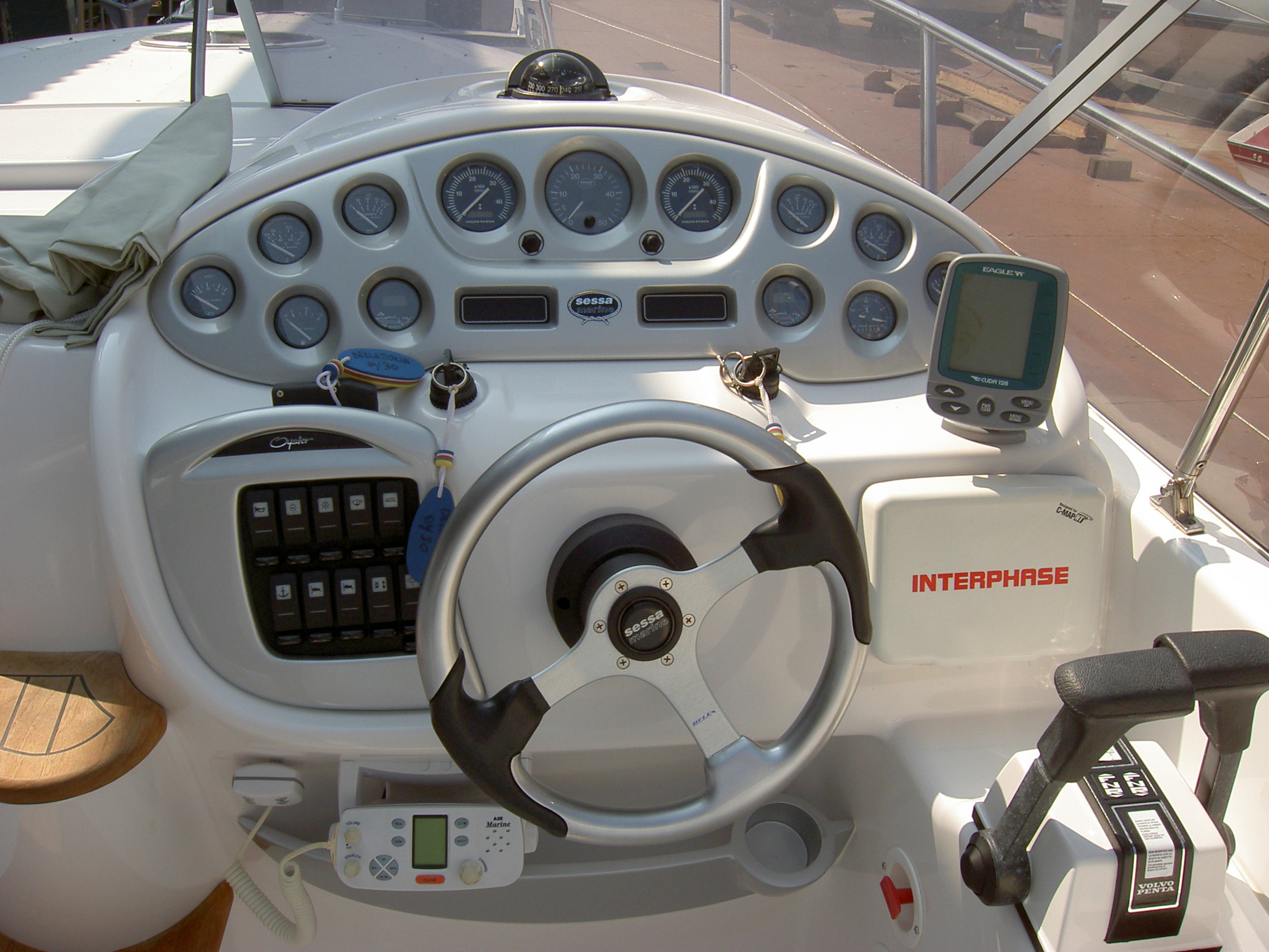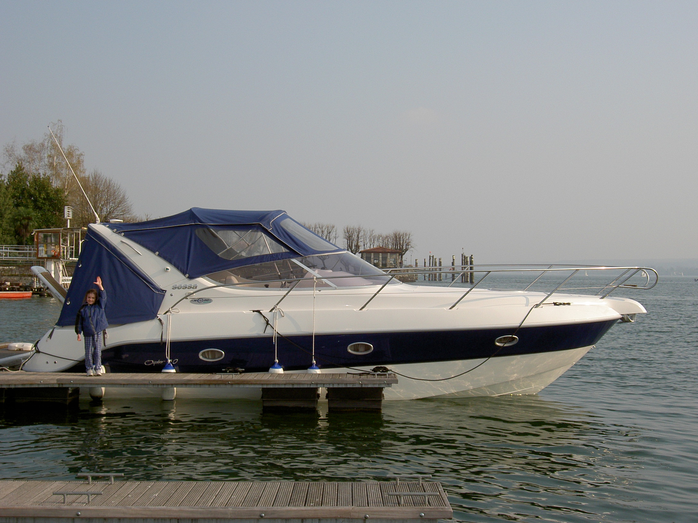 Barca da 30' 9.56 mt. x 3.10 mt anno 2004, 255 ore di navigazione, motorizzata con 2 cad diesel volvo penta da 170 hp eliche duo prop in acciaio - super accessoriata, coperta in teak, tv, ralph lauren australia passerella idraulica Besenzoni, elica di prua, teli nuovi visibile in liguria (prov. SV) - BATTELLO come NUOVO!